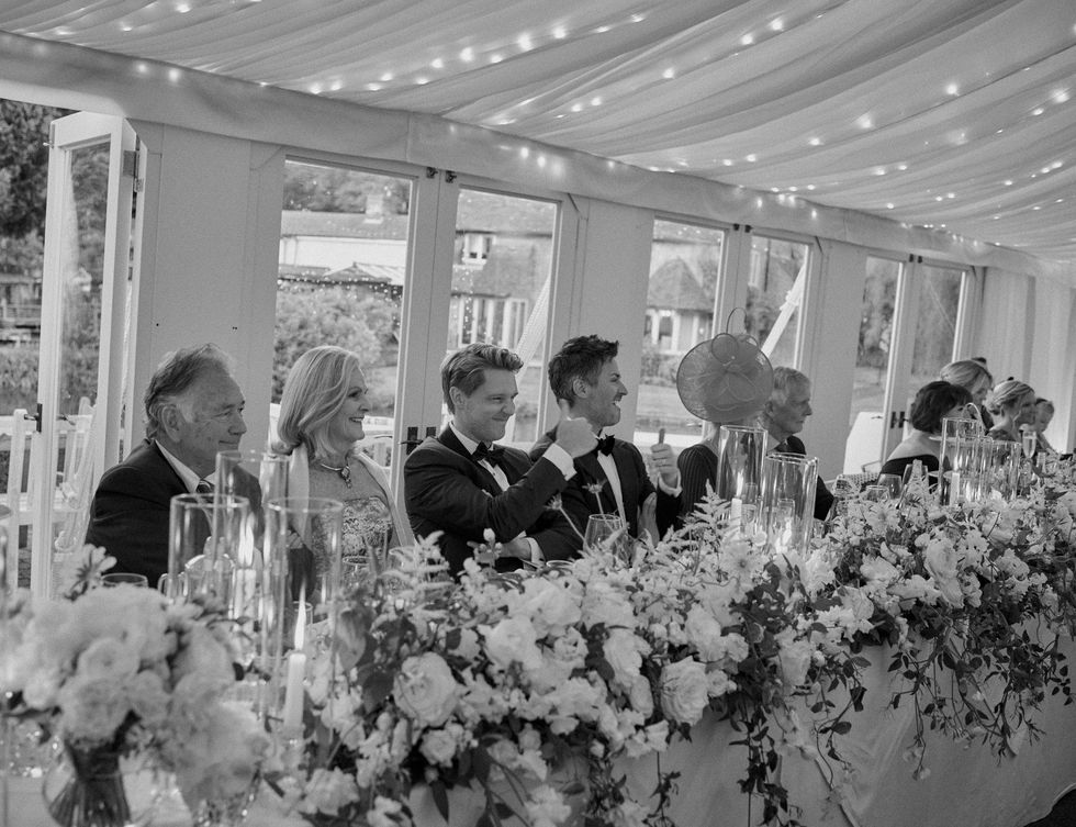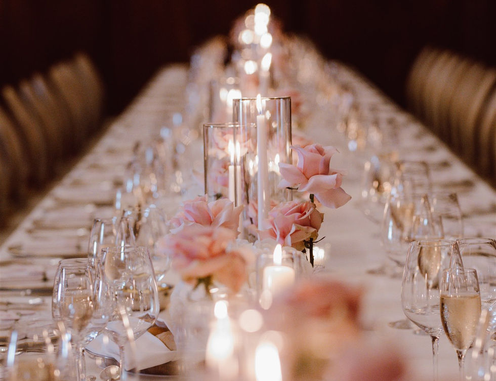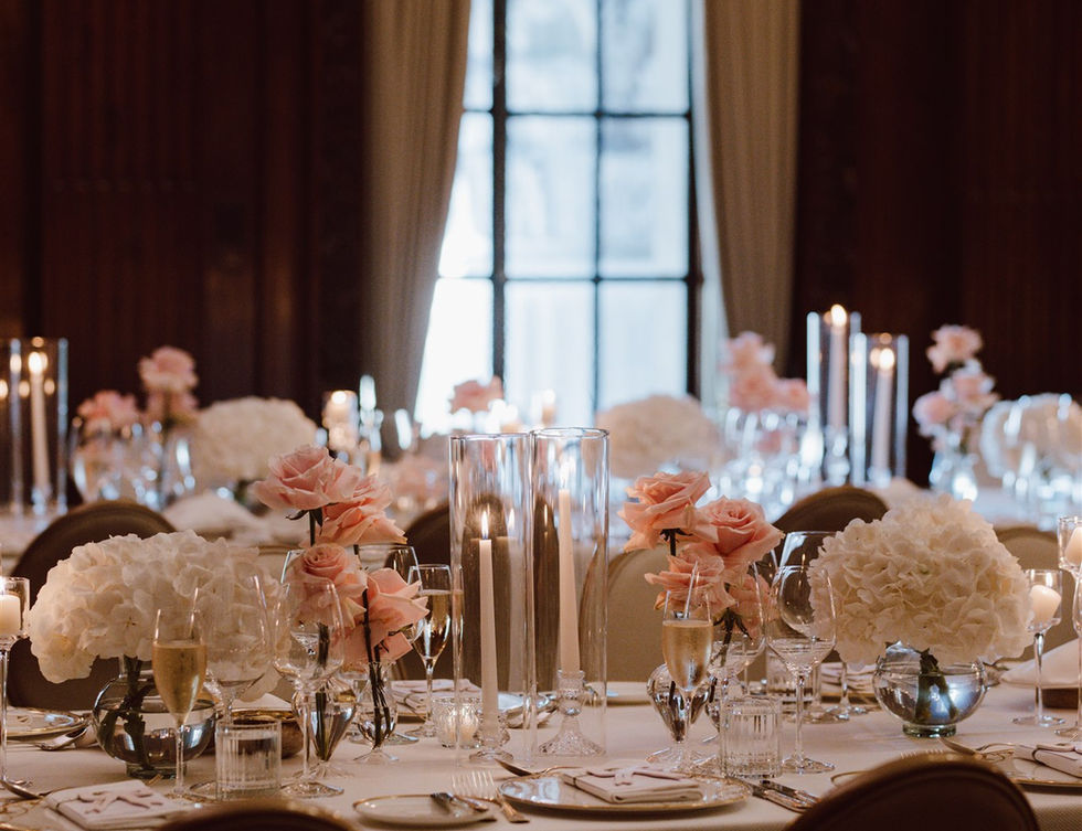 Bronte and James celebrated their beautiful wedding at the magnificent Four Seasons Tower Bridge, with the stunning London skyline providing a perfect backdrop. Their reception featured luxurious pink and white ruffled roses, complemented by clouds of white hydrangeas, all elegantly illuminated by candlelight to create a magical atmosphere.
